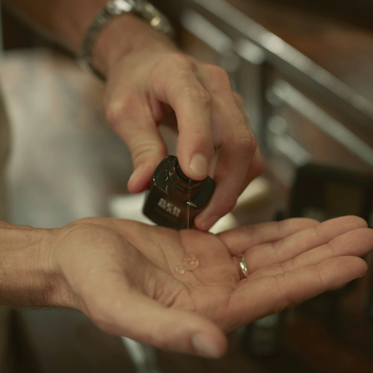 – Frottez dans les mains et répartir uniformément sur les cheveux et la barbe